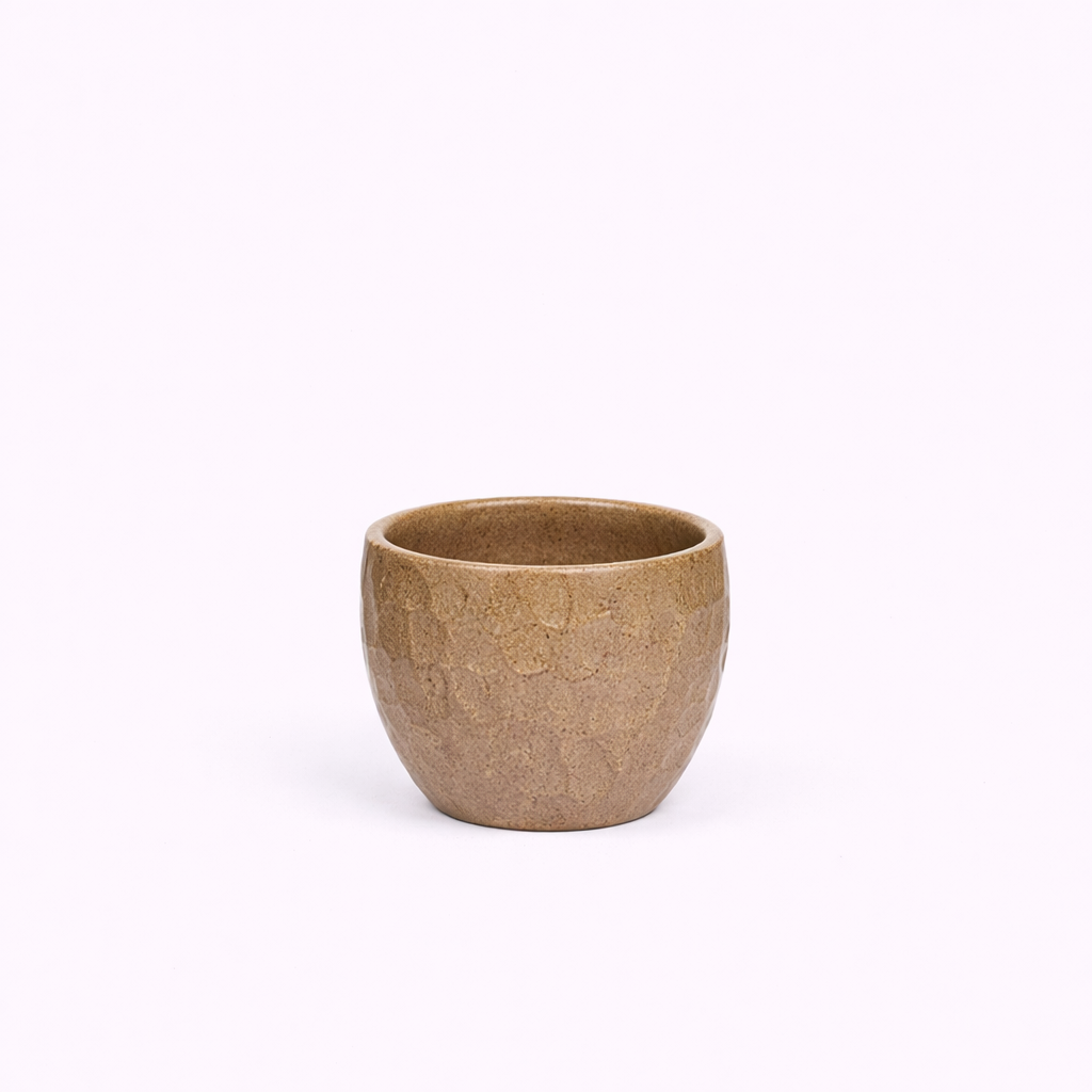 This Ceramic Full Hammering Asian Tea Cup features durable, high-quality and sustainable earthenware. Skilled Mahaguthi artisans carefully shape and finish each piece with patience and precision. The simple yet functional design, combined with subtle handcrafted textures, gives this earthenware Mug a charming and artistic character that enhances both everyday use and presentation.